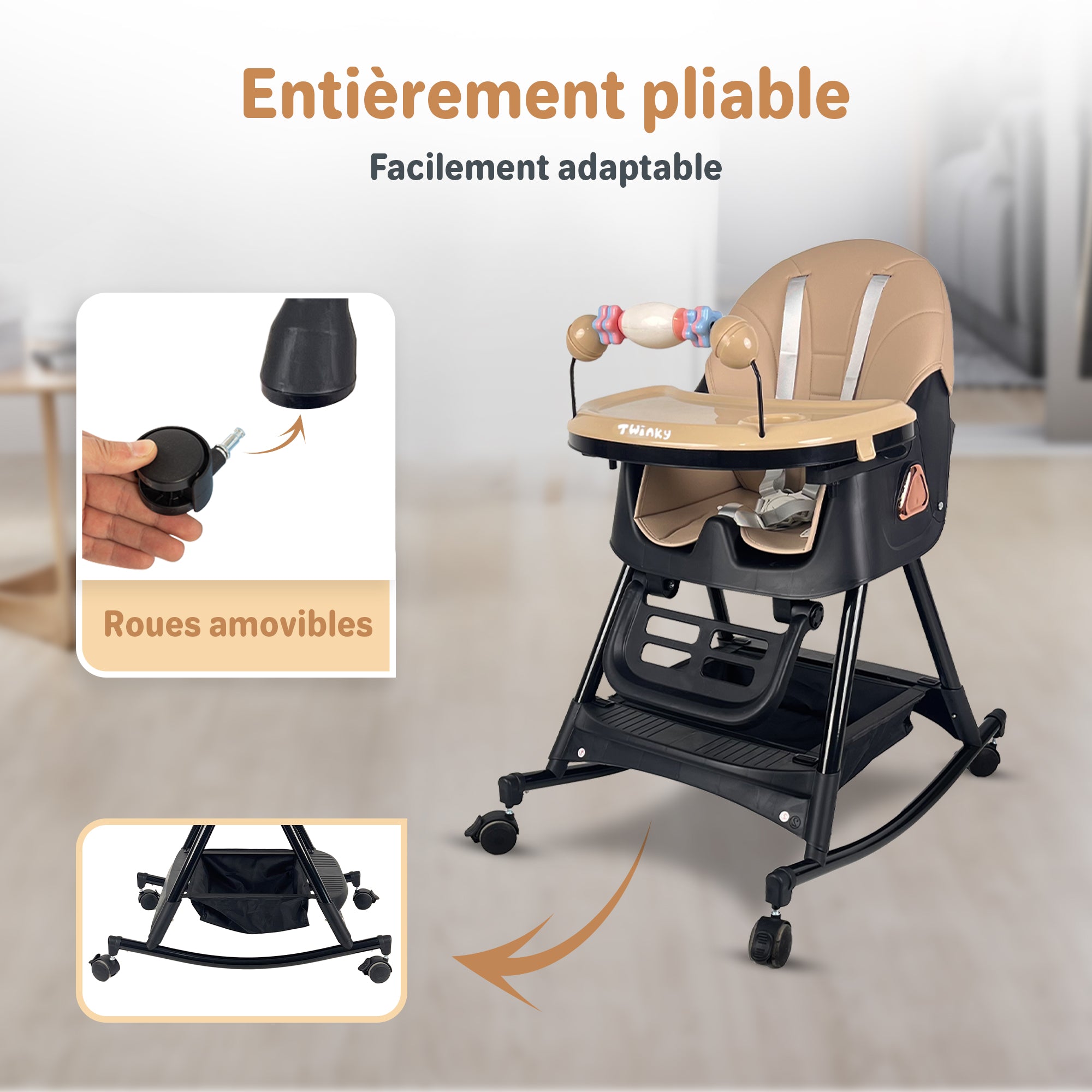Cet indispensable intelligent n’est pas une simple chaise enfant. C’est une chaise haute, un chariot de jeu et une balançoire en un. Parfait pour les familles actives qui veulent allier praticité, sécurité et plaisir de jeu.