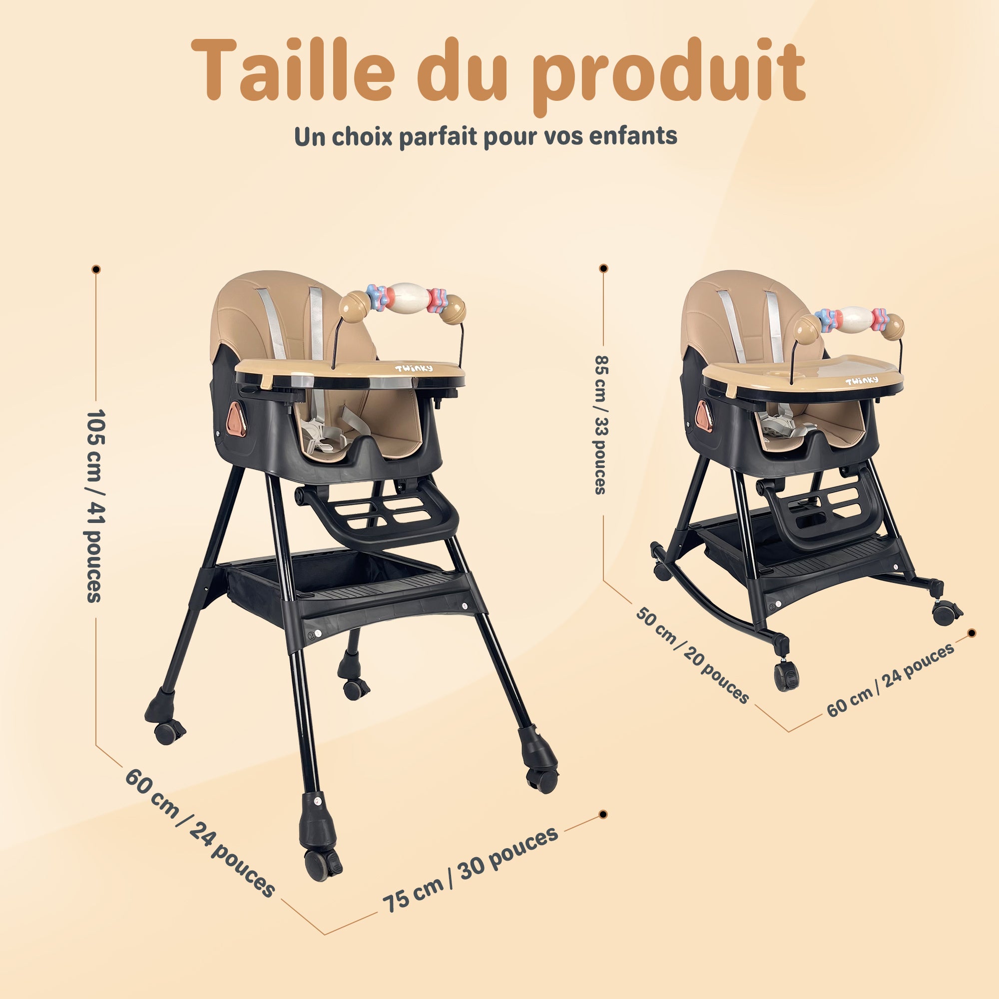 La Twinky Swing grandit avec votre enfant, du bébé au tout-petit. Sécurisée, confortable et conçue pour les repas et les moments de jeu les plus animés.
